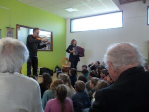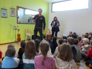 Les élèves de la classe de CE1 ont assisté le 13 octobre dernier à un concert du groupe Musique acoustique machine, « Simply two », une animation proposée par la médiathèque de Saint Aubin du Cormier.