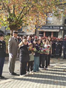 Comme tous les ans, les élèves sont venus nombreux participer à la commémoration du 11 novembre 1918. Après un temps d’écoute des discours officiels, un dépôt de gerbes  et une minute de silence, ils ont entonné la Marseillaise.