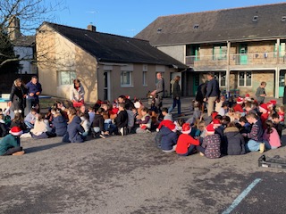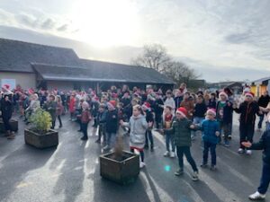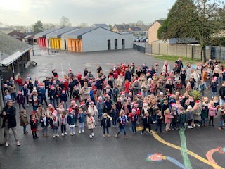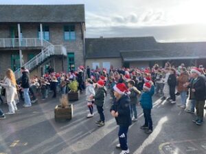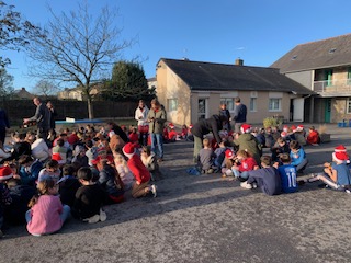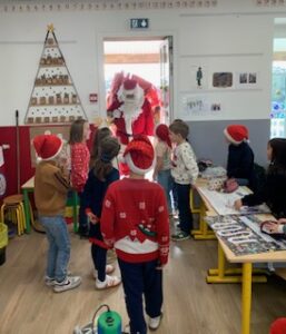 Festivités de Noël : flashmob, visite du père Noël dans les classe, goûter