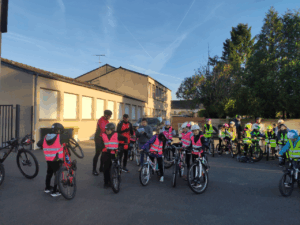 Après des séances d’entraînement pour apprendre à maîtriser son vélo, les règles de circulation… les élèves sont partis se promener dans St Aubin. Merci à Emma notre intervenante et aux 8 parents qui ont accepté d’encadrer les groupes lors de la sortie.