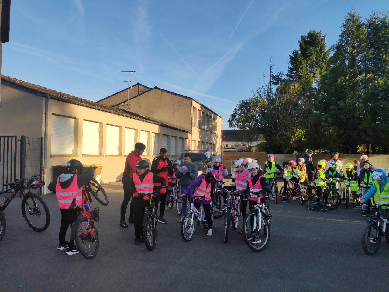 Après des séances d’entraînement pour apprendre à maîtriser son vélo, les règles de circulation… les élèves sont partis se promener dans St Aubin. Merci à Emma notre intervenante et aux 8 parents qui ont accepté d’encadrer les groupes lors de la sortie.